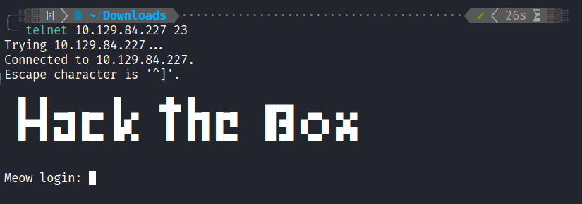 Upon connecting, the server displayed a default HTB Linux banner and prompted for a login.