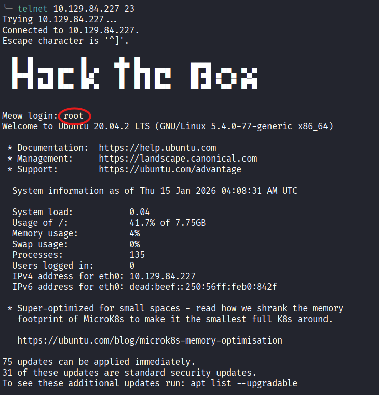 During the enumeration of the Telnet service, I attempted to login using the most privileged account name, root.