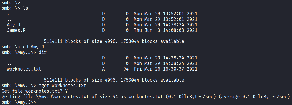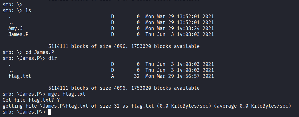 I downloaded both files using the get command within the SMB client.