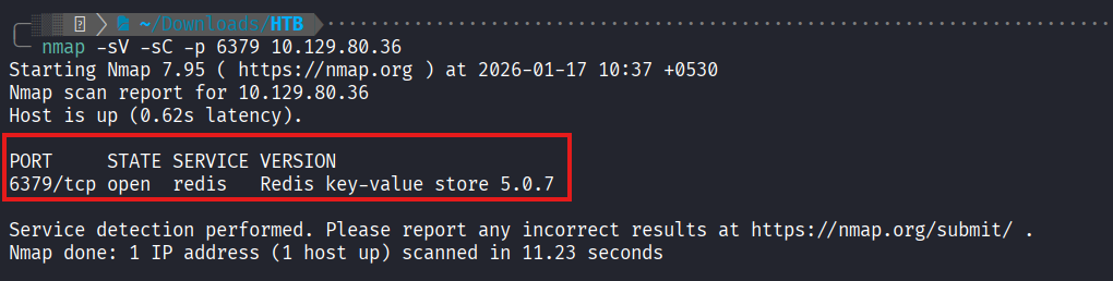 nmap -sC -sV -p 6379 10.129.80.36Results Summary: