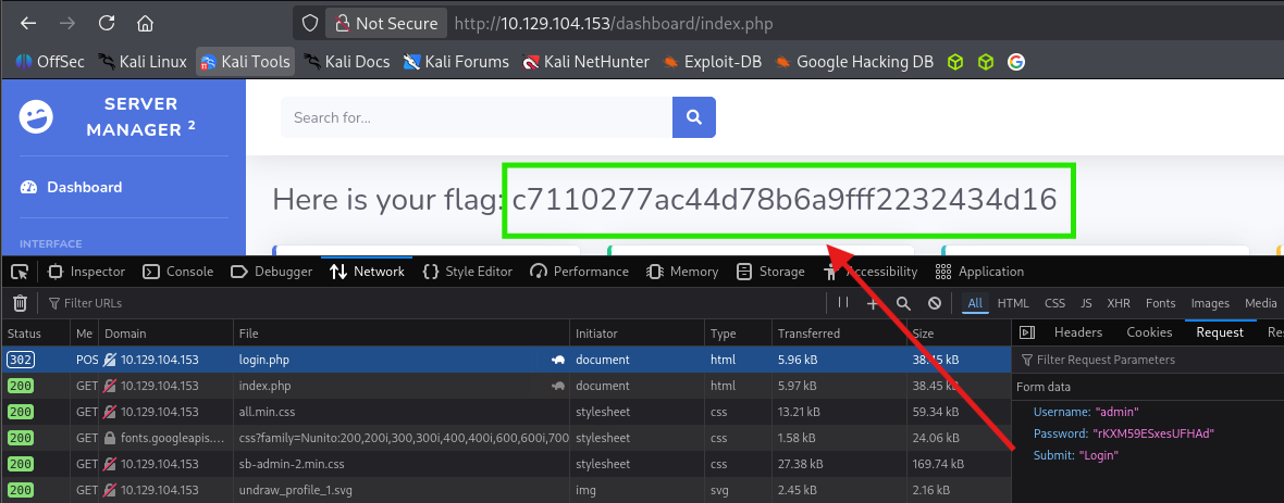 login.phppage and adashboard/directory. - Initial Access: Logged into the