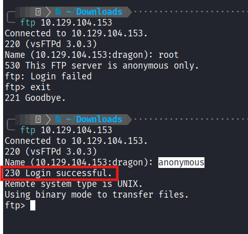 ftp 10.129.104.153. - Logged in as
