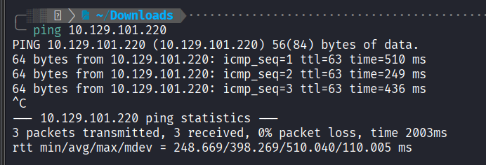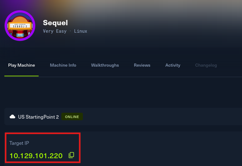 Obtained the target IP from the HTB Dashboard.